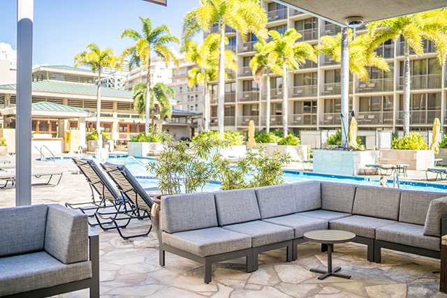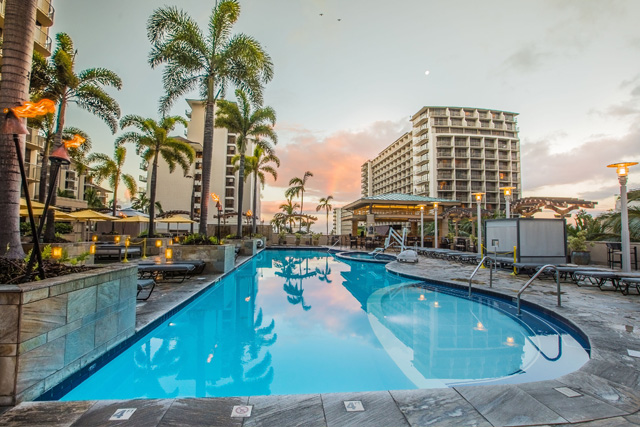 호텔 4층에 위치한 랜드 라나이는 온수 수영장과 월풀 스파, 어린이 수영장을 비롯하여 안락의자 라운지, 파라솔 그늘 테이블, 파빌리온 좌석, 파키니 풀 바를 갖추고 있습니다.